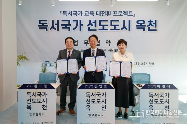 한국현대미술신문 신정은 기자 | 옥천군은 20일 옥천가양복합문화센터에서 국회 교육위원회, 옥천교육지원청과 함께 ‘독서국가 선도도시 옥천’ 조성을 위한 업무협약을 체결했다고 밝혔다.