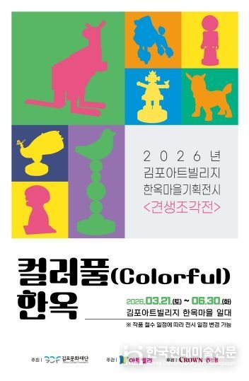 한국현대미술신문 배윤섭 기자 | (재)김포문화재단(대표이사 이계현) 오는 3월 21일부터 6월 30일까지 김포아트빌리지 한옥마을 야외공간에서 기획전시 '견생조각전' ‘컬러풀(Colorful) 한옥’을 개최한다고 밝혔다.
