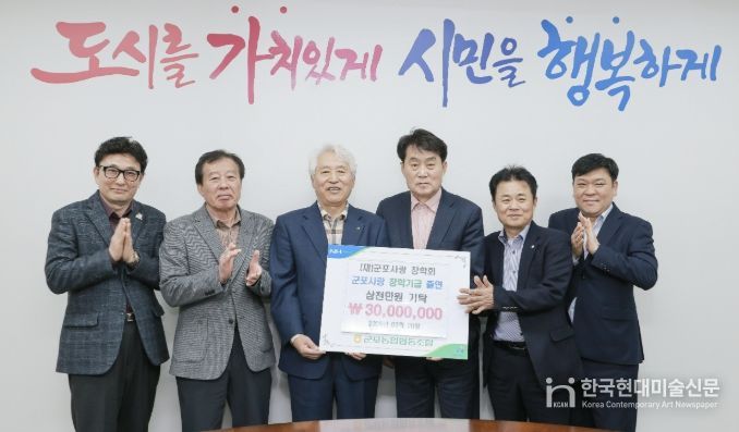 한국현대미술신문 배윤섭 기자 | 군포농협 이명근 조합장은 3월 20일 군포시청 시장실에서 (재)군포사랑장학회에 지역 인재 육성을 위해 써 달라며 장학금 3천만원을 기탁했다.