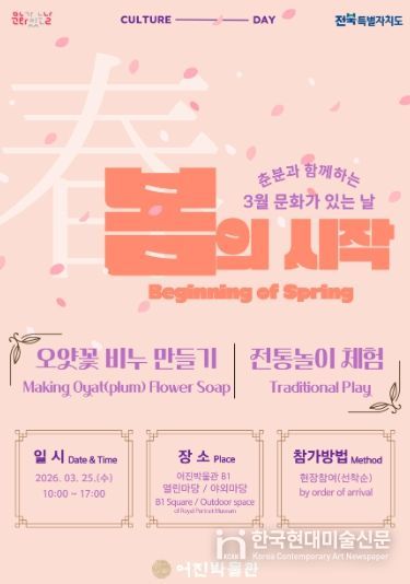 한국현대미술신문 기자 | 전주시 어진박물관은 오는 25일 ‘3월 문화가 있는 날’을 맞아 ‘봄의 시작’을 주제로 체험프로그램을 운영한다.