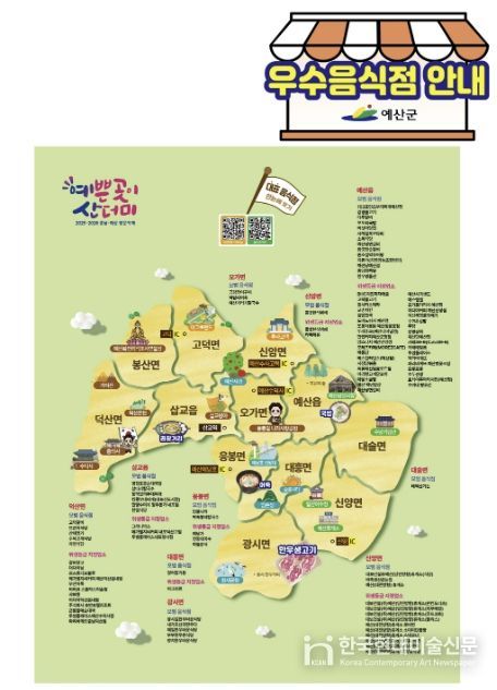 한국현대미술신문 신정은 기자 | 예산군은 예산을 방문하는 관광객과 군민이 안심하고 음식점을 이용할 수 있도록 주요 관광지에 우수음식점 안내판을 설치했다고 밝혔다.