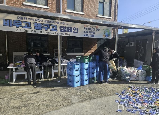 한국현대미술신문 신정은 기자 | 예산군자원봉사센터는 탄소중립 실천을 위한 주민 주도형 자원봉사 활동으로 ‘비우고 헹구고’ 환경캠페인을 센터 주차장에서 실시했다고 24일 밝혔다.