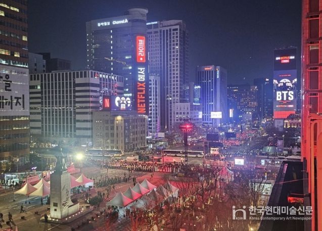 한국현대미술신문 배건 기자 | 종로구는 3월 21일 광화문스퀘어 옥외광고물 자유표시구역에서 열린 BTS 컴백 공연을 계기로, 광화문 일대를 빛과 미디어가 결합한 초대형 무대로 구현했다.