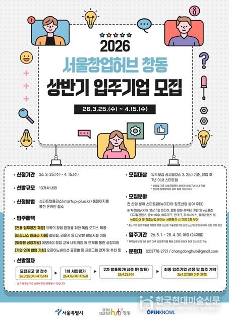 한국현대미술신문 배건 기자 | 콘텐츠·XR 등 뉴미디어 산업이 빠르게 성장하며 관련 스타트업 수요가 확대되는 가운데, 동북권 창업지원 특화거점 ‘서울창업허브 창동’이 2026년 상반기 신규 입주기업 모집에 나선다.