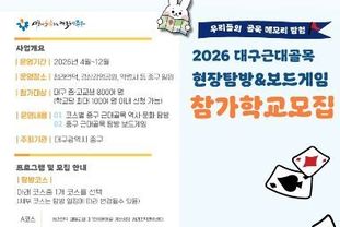 한국현대미술신문 정소영 기자 | 대구 중구는 3월부터 지역 청소년들이 우리 지역의 역사와 문화를 친숙하고 재미있게 체험할 수 있는 2026년 근대골목 보드게임 탐방 프로그램을 운영한다.