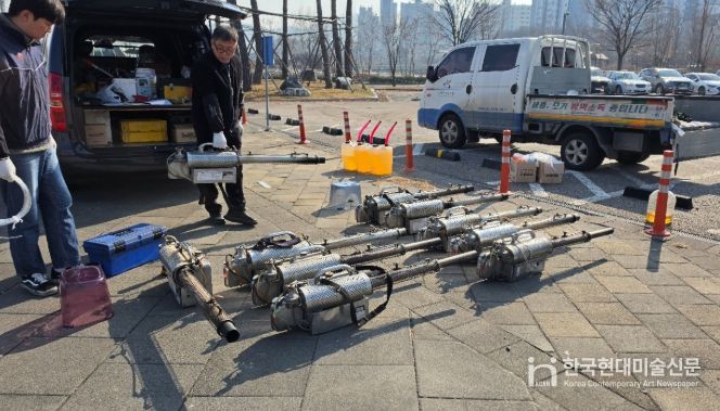 한국현대미술신문 박재남 기자 | 인천 서구는 지난 23일 아시아드주경기장 북측광장에서 보건소 및 동 행정복지센터 방역장비 점검 및 수리를 실시했다.