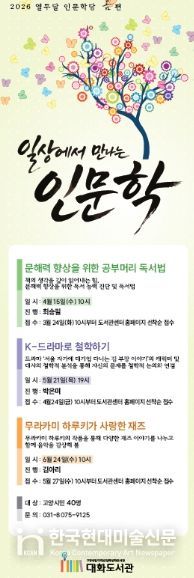 한국현대미술신문 배윤섭 기자 | 고양특례시 대화도서관의 대표 인문학 프로그램인 ‘열두달 인문학당’이 오는 4월부터 ‘일상에서 만나는 인문학’이라는 주제로 진행된다.