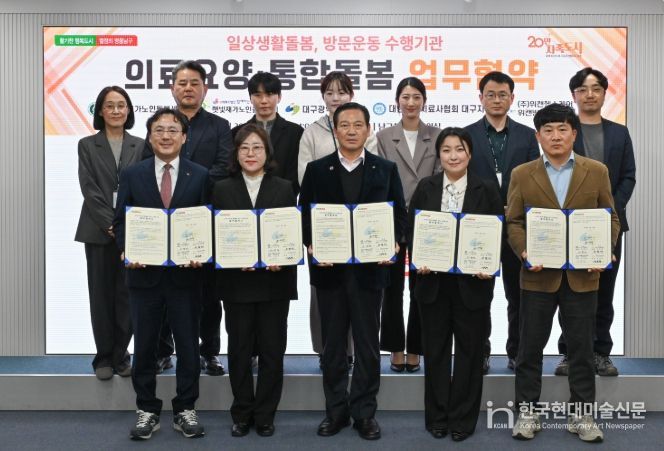 한국현대미술신문 정소영 기자 | 대구 남구는 3월 24일 의료요양통합돌봄 사업의 일환으로 가사, 동행, 방문운동을 수행할 지역 내 기관 4곳과 업무 협약을 체결했다.