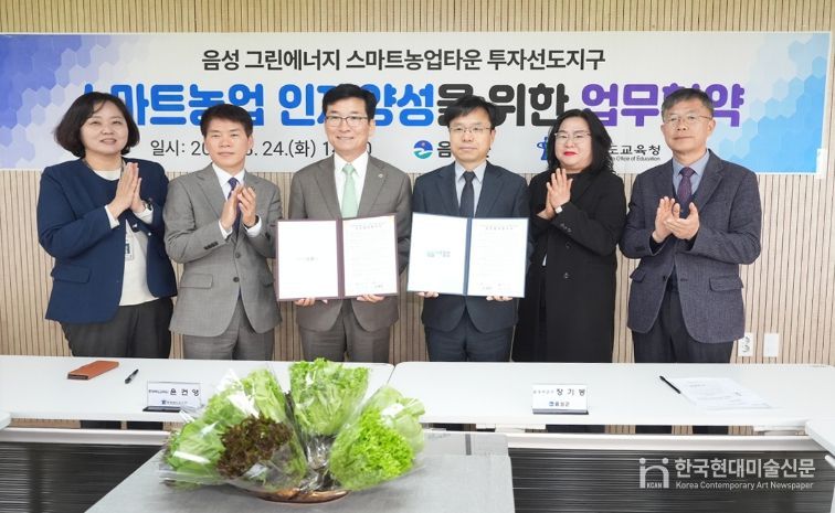 한국현대미술신문 신정은 기자 | 음성군은 24일 H&A 스마트팜과 그린에너지 스마트농업타운 대상지 일원에서 충청북도교육청과 함께 지역 교육발전 방향과 미래 인재 양성 협력방안을 모색하기 위한 정책간담회를 열고 공동협약을 체결했다.