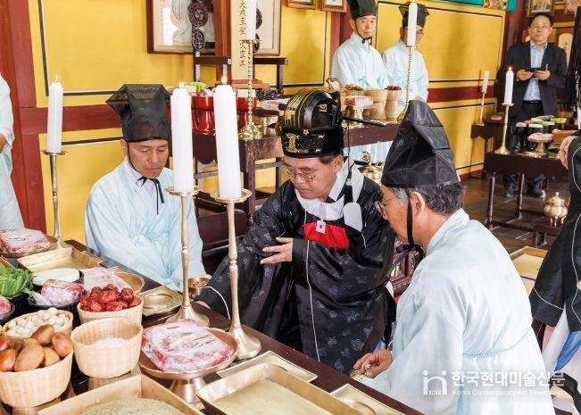 한국현대미술신문 배건 기자 | 진교훈 강서구청장이 24일 서울 유일의 향교인 양천향교 ‘춘기 석전제’에 초헌관으로 참여해 옛 성현들을 기리며 제례를 올렸다.