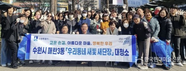 한국현대미술신문 배윤섭 기자 | 수원특례시 영통구와 매탄3동 행정복지센터는 지난 24일, 영통구청과 매여울 어린이공원 주변, 매탄 중심상가 일대에서 봄맞이 합동 대청소를 실시했다.