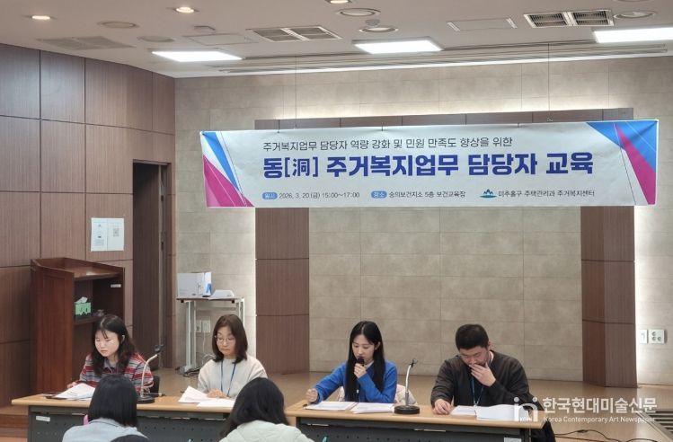 한국현대미술신문 박재남 기자 | 인천 미추홀구 주거복지센터는 숭의보건지소 보건교육실에서 동 행정복지센터 주거복지 및 사례 관리 담당자 30명을 대상으로 ‘2026년 주거복지 업무 담당자 직무교육’을 진행했다고 25일 밝혔다.