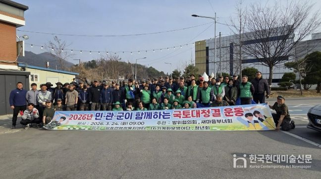 한국현대미술신문 배윤섭 기자 | 포천시 일동면 행정복지센터는 지난 24일 봄을 맞아 마을안길과 도로변 일원에서 민관군이 함께하는 국토대청소를 실시했다.