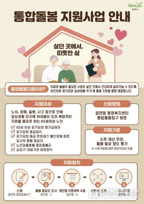 양주시 관계자는 “그동안 기관별로 분산됐던 서비스를 통합해 시민 불편을 해소하는 데 중점을 뒀다”며, “법 시행과 함께 양주 시민 누구나 따뜻한 돌봄을 누릴 수 있도록 현장 중심의 행정을 펼치겠다”고 말했다.