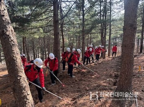 한국현대미술신문 배윤섭 기자 | 경기도와 군포시, 의왕시, 안산시, 수원국유림관리소, 군포소방서는 25일 군포시 수리산도립공원 내 위치한 에덴기도원 일원(속달로 287-76)에서 산불 대응 유관기관 합동 통합훈련을 실시했다.