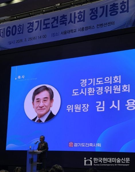 한국현대미술신문 배윤섭 기자 | 경기도의회 도시환경위원회 김시용 위원장(국민의힘·김포3)은 25일 경기도건축사회 제60회 정기총회에 참석해 건축 분야 발전을 위해 헌신해 온 관계자들에게 감사와 격려의 뜻을 전했다.