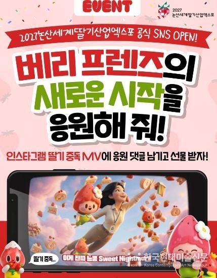 한국현대미술신문 신정은 기자 | 논산세계딸기산업엑스포조직위원회는 ‘2027 논산세계딸기산업엑스포’ 공식 SNS 채널 오픈을 기념해 팔로우 이벤트를 진행한다고 밝혔다.