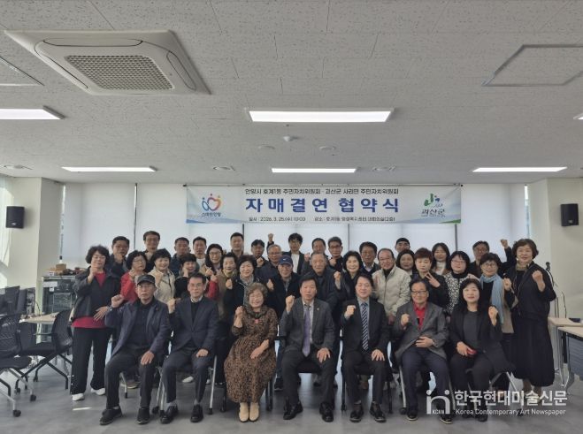 한국현대미술신문 배윤섭 기자 | 안양시 동안구 호계1동 주민자치위원회는 지난 25일 호계1동 행정복지센터에서 충북 괴산군 사리면 주민자치위원회와 상생 발전 및 도농 교류 활성화를 위한 자매결연 협약을 체결했다.