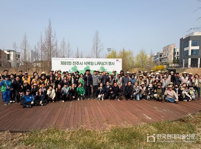 한국현대미술신문 기자 | 봄철 미세먼지가 기승을 부리는 가운데 전주시가 식목일을 앞두고 미세먼지 저감 및 탄소중립 실천을 위해 시민들과 함께 도심 공원에 나무를 심었다.
