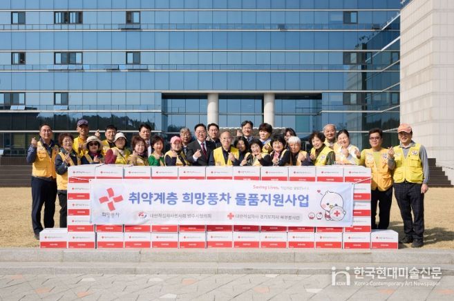 한국현대미술신문 배윤섭 기자 | 대한적십자사봉사회 양주시협의회(회장 정진수)는 지난 25일 시청 원형광장 앞에서 ‘희망풍차 물품 전달식’을 개최했다.