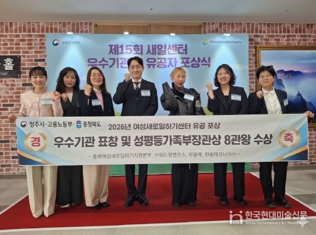 한국현대미술신문 신정은 기자 | 충북도는 충북여성새로일하기지원본부(본부장 배혜영)가 3월 27일 성평등가족부가 주최한 '제15회 새일센터 우수기관 및 유공자 포상식'에서 총 8건의 장관상을 수상하여 전국 최고 성과를 거두었다고 밝혔다.