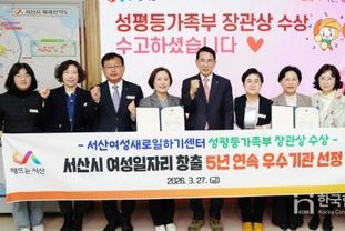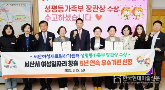 한국현대미술신문 신정은 기자 | 충남 서산시는 ‘서산여성새로일하기센터’가 제15회 여성새로일하기센터 유공 포상식에서 우수기관으로 선정됐다고 밝혔다.