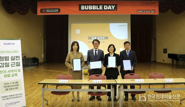 한국현대미술신문 배윤섭 기자 | 안양시청소년재단은 지난 30일 만안청소년수련관 도담소극장에서 전 직원을 대상으로 내부 커뮤니케이션 행사 ‘버블데이(BUBBLE DAY)’를 운영하며 조직 소통과 청렴문화 확산에 나섰다.