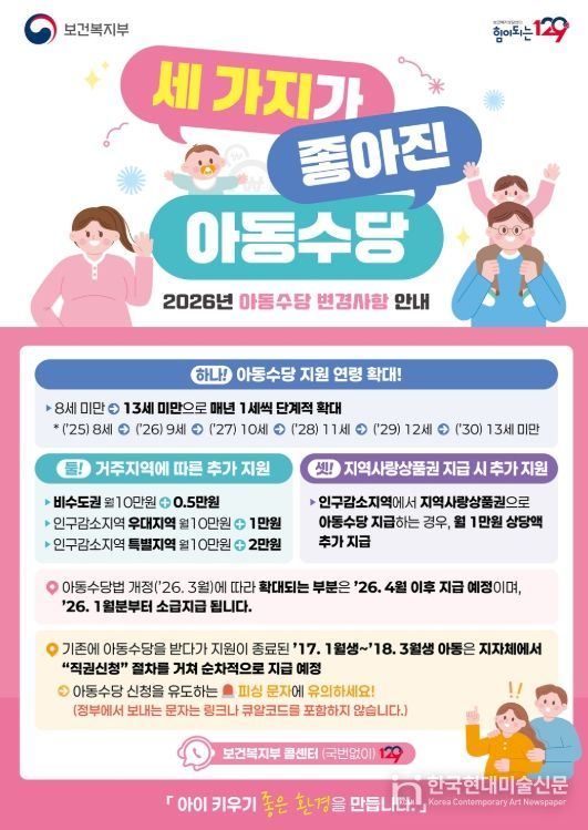 한국현대미술신문 기자 | 정읍시가 아동 양육 가정의 경제적 부담을 실질적으로 덜고 지역 균형 발전을 도모하기 위해, 4월부터 아동수당 지급 대상을 9세 미만으로 확대하고 월 11만원으로 지원금을 인상한다.