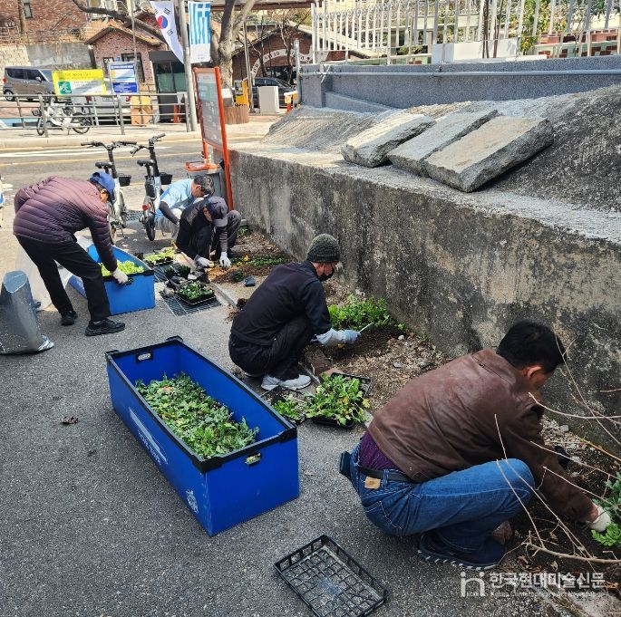 한국현대미술신문 배건 기자 | 서울 성북구 성북동 주민센터가 봄을 맞아 쾌적한 마을 환경 조성을 위해 환경정비 활동과 꽃 식재 행사를 추진했다.