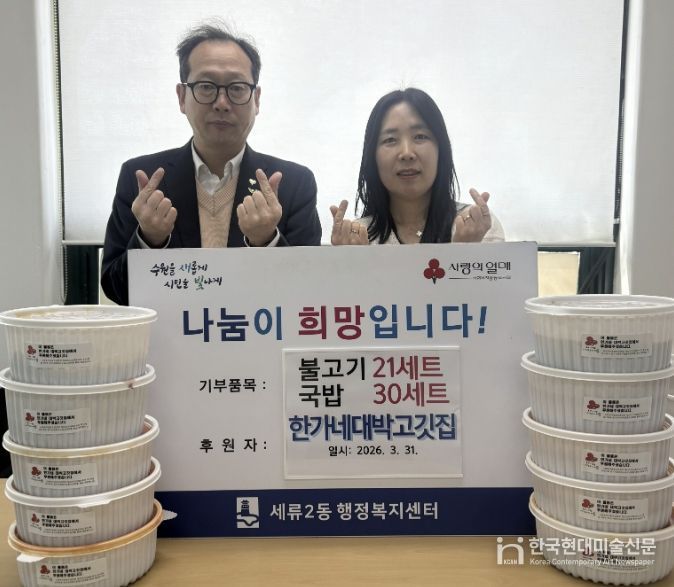 한국현대미술신문 배윤섭 기자 | 지난 31일, 수원시 권선구 세류2동에 위치한 한가네 대박고깃집은 국밥 30그릇과 불고기 20세트를 세류2동행정복지센터에 기탁했다.