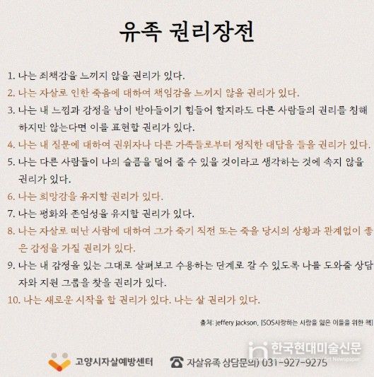박선영 센터장은 “자살유족은 누구보다 도움이 필요하지만 지원을 받기 어려운 경우가 많다”며 “자조모임을 통해 서로 공감하고 회복하는 경험을 하길 바라며 많은 유족의 참여를 바란다”고 말했다.