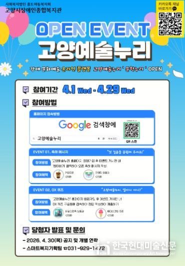 고양시장애인종합복지관은 플랫폼 이용자를 늘리고 전시를 활성화시키기 위해 4월 1일부터 29일까지 다양한 이벤트를 실시하고 이벤트 참여자 중 추첨을 통해 다양한 기프티콘을 제공할 예정이다. 당첨자 발표는 4월 30일 플랫폼을 통해 발표한다.