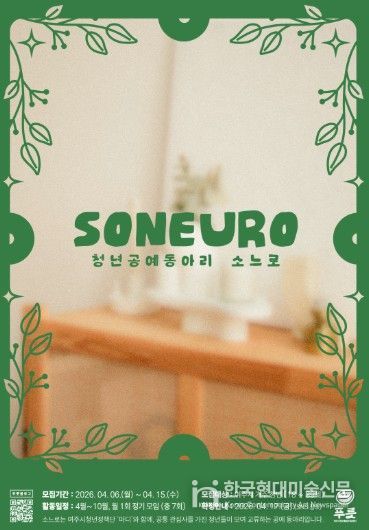 한국현대미술신문 배윤섭 기자 | 여주시청년활동지원센터 푸릇은 오는 4월 청년공예동아리 'soneuro(소느로)' 참여자를 모집한다고 밝혔다.