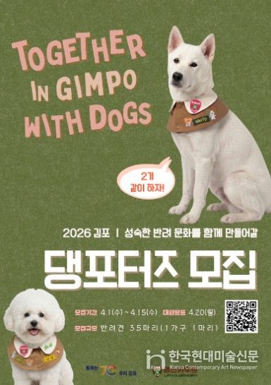 한국현대미술신문 배윤섭 기자 | 김포시는 올바르고 책임 있는 반려문화 확산을 이끌 ‘김포 댕포터즈’를 모집한다고 밝혔다.