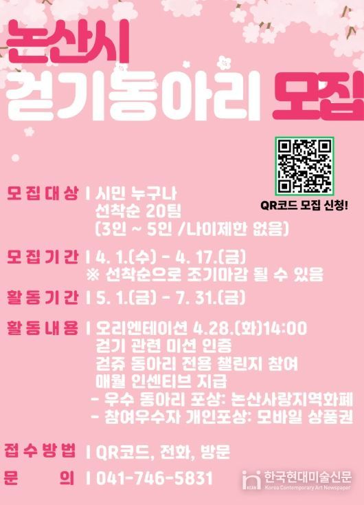 한국현대미술신문 신정은 기자 | 논산시는 오는 17일까지‘비대면 걷기동아리’참여자를 모집한다.
