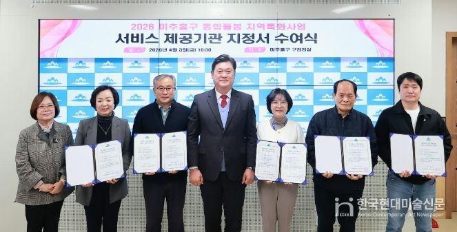 한국현대미술신문 박재남 기자 | 인천 미추홀구는 3일 구청장실에서 ‘2026년 미추홀구 통합 돌봄 지역특화 사업을 수행할 서비스 제공기관 5곳에 지정서를 수여했다고 밝혔다.