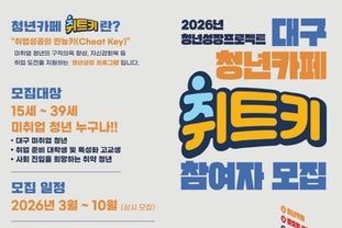 한국현대미술신문 정소영 기자 | 대구광역시는 미취업 청년의 자신감 회복과 취업역량 강화를 통해 구직 의욕을 높이기 위한 ‘2026년 청년성장프로젝트(청년카페 취트키)’를 본격 시행한다.