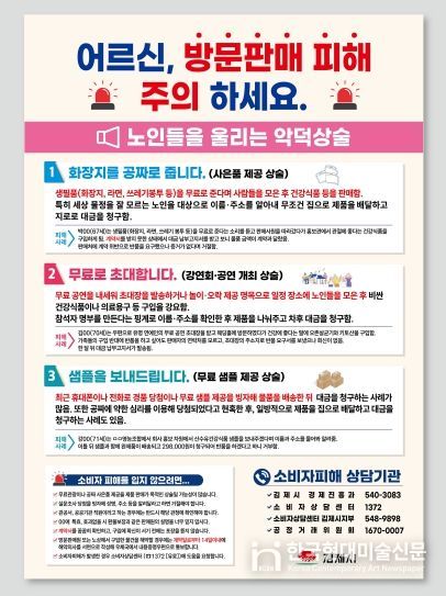 한국현대미술신문 기자 | 김제시가 최근 고령층을 대상으로 한 방문판매 홍보관(일명 ‘떴다방’) 영업이 확산됨에 따라 소비자 피해 예방을 위한 시민들의 각별한 주의를 당부했다.