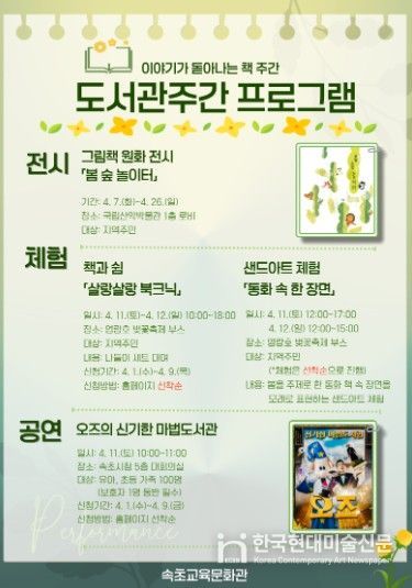 한국현대미술신문 원진 기자 | 속초교육문화관은 4월 7일부터 4월 26일까지 도서관주간 행사를 운영한다.