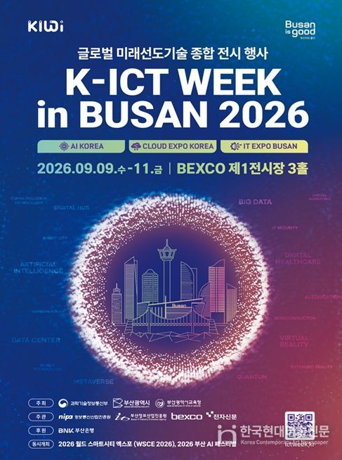 한국현대미술신문 정소영 기자 | 부산시는 인공지능 전환(AX) 시대를 선도하기 위한 지역 최대 정보통신기술(ICT) 종합 행사인 '2026 K-ICT WEEK in BUSAN'의 참가 기업을 오는 4월 13일부터 7월 31일까지 모집한다고 밝혔다.