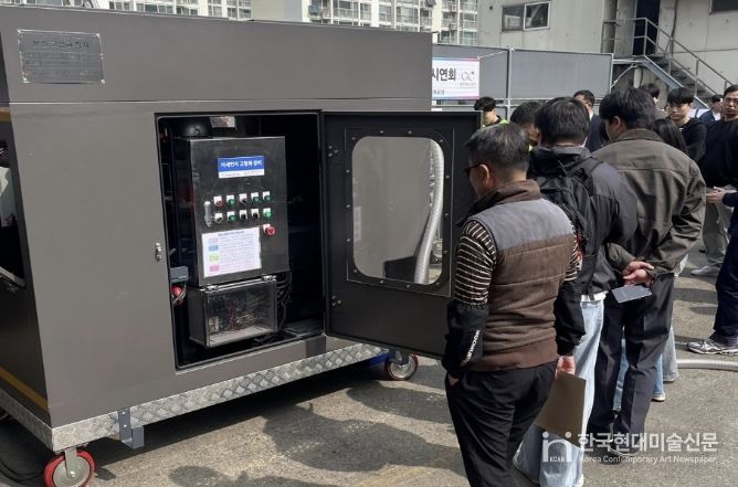 한국현대미술신문 배건 기자 | 금천구는 지난 3일 금천자원재활용처리장에서 와이제이산업과 공동 개발한 ‘수소 전기 노면 분진 청소차’와 ‘미세먼지 고형화 장치’의 시연회를 개최했다고 밝혔다.