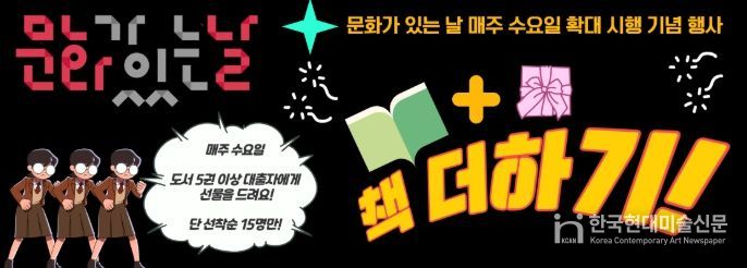 한국현대미술신문 신정은 기자 | 충청남도서산교육지원청해미도서관은 매월 마지막 주 수요일에 운영되던 ‘문화가 있는 날’을 매주 수요일로 확대 시행함에 따라, 이를 기념한 참여형 행사 '책 더하기'를 운영한다.