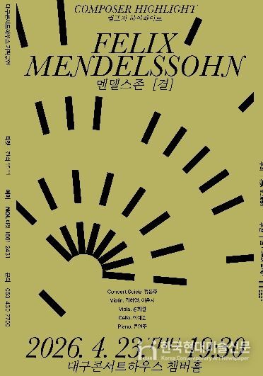 대구콘서트하우스 박창근 관장은 “이번 공연은 멘델스존 음악 속 섬세한 결을 따라가며, 구조적 아름다움과 서정성을 깊이 느낄 수 있는 시간이 될 것”이라며 “해설과 함께하는 구성으로 관객들이 클래식 음악을 보다 친근하게 체험하길 바란다”고 전했다.