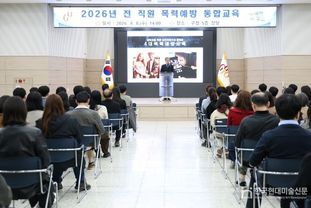 한국현대미술신문 배건 기자 | 구로구가 이달 8일 구청 강당에서 공무원, 공무직 근로자, 환경공무관, 청원경찰, 기간제 근로자 등 전 직원을 대상으로 안전한 조직문화 조성을 위한 ‘폭력예방 통합교육’을 실시했다.