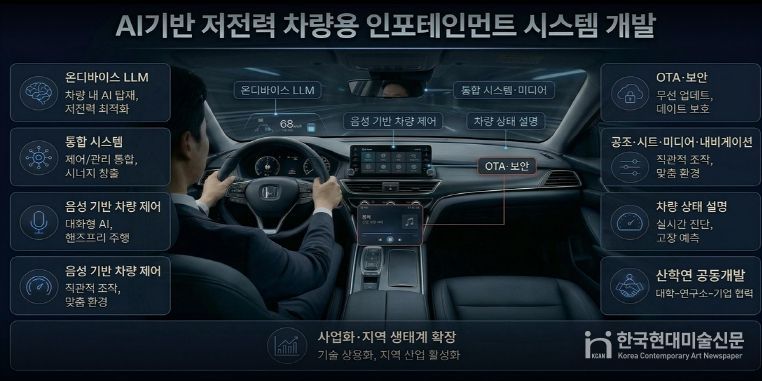 한국현대미술신문 정소영 기자 | 대구광역시는 산업통상부 주관 ‘2026 지역앵커기업-지역대학 전략기술 공동개발사업’ 공모에 ‘SDV 환경에 최적화된 AI 기반 저전력 통합 차량 인포테인먼트 시스템 개발’ 사업이 최종 선정됐다고 밝혔다.