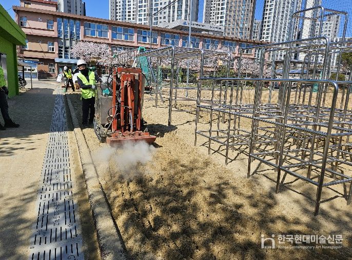특히 전문 업체에서 놀이기구와 바닥재를 고온·고압의 스팀으로 소독하고 모래 바닥재 기생충(란) 검사도 병행 지원하여 학교 행정업무 부담이 경감될 것으로 기대된다.