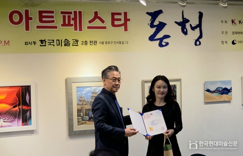 한국현대미술신문 김미정 기자 | 지난 8일, 한국미술관에서 진행된 제14회 코리아 아트페스타 ‘동행’전에서 작품 〈연(緣)의 결〉을 출품한 서희정 작가가 공예 부문 신진작가상을 수상하였다.