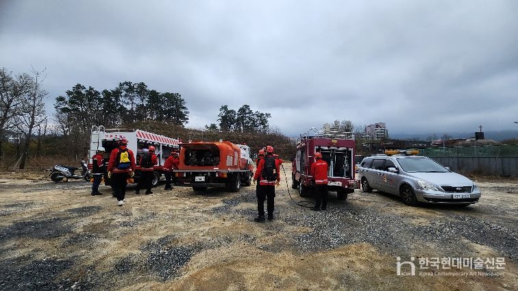 한국현대미술신문 신정은 기자 | 옥천군은 10일 오후 4시, 봄철 산불조심기간 및 대형산불 특별대책기간을 맞아 산불 진화 장비 점검과 자체 실습을 실시했다.