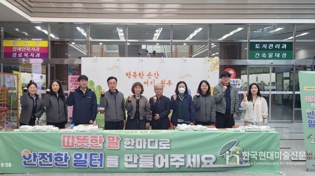 한국현대미술신문 원진 기자 | 원주시는 지난 9일 시청 로비에서 안전보건공단 강원지역본부, 고용노동부 원주지청과 함께 ‘고객응대근로자 보호 합동 캠페인’을 전개했다.