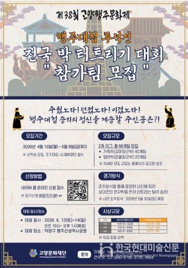 한국현대미술신문 배윤섭 기자 | 고양문화재단은 오는 6월 열릴 고양행주문화제의 대표 프로그램 중 하나인 행주대첩 투석전 ‘전국 박 터트리기 대회’의 참가팀을 오는 5월 8일까지 모집한다.